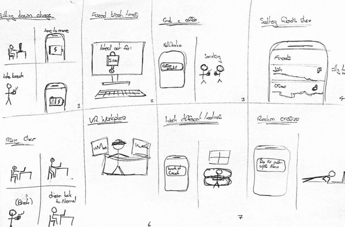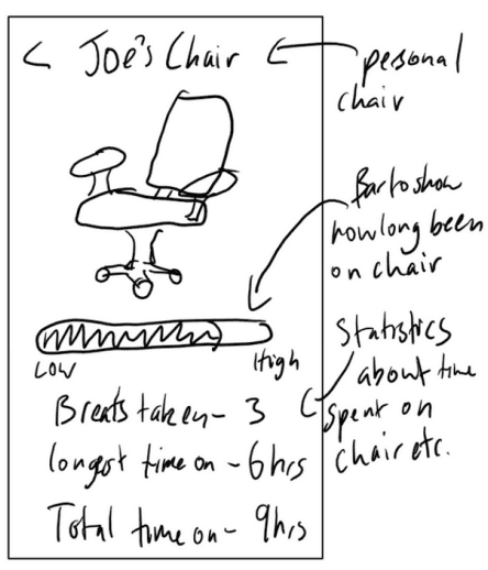 A chair that gives you notifications about your time spent on the desk and gives you physical notifications like vibrations and maybe has like a bike pedal or something
