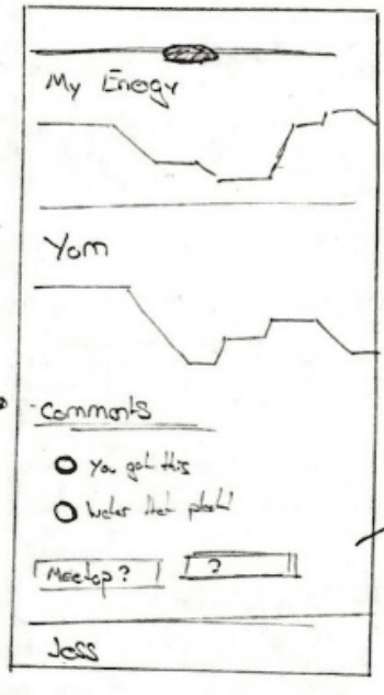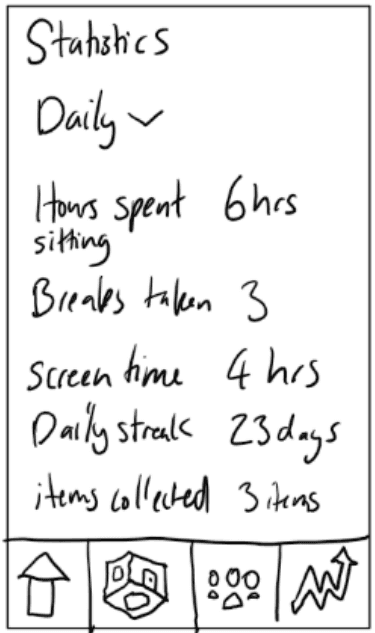 This sketch helped be a blueprint for the profile page which held all the statistics were the user can see their daily, weekly and monthly statistics.